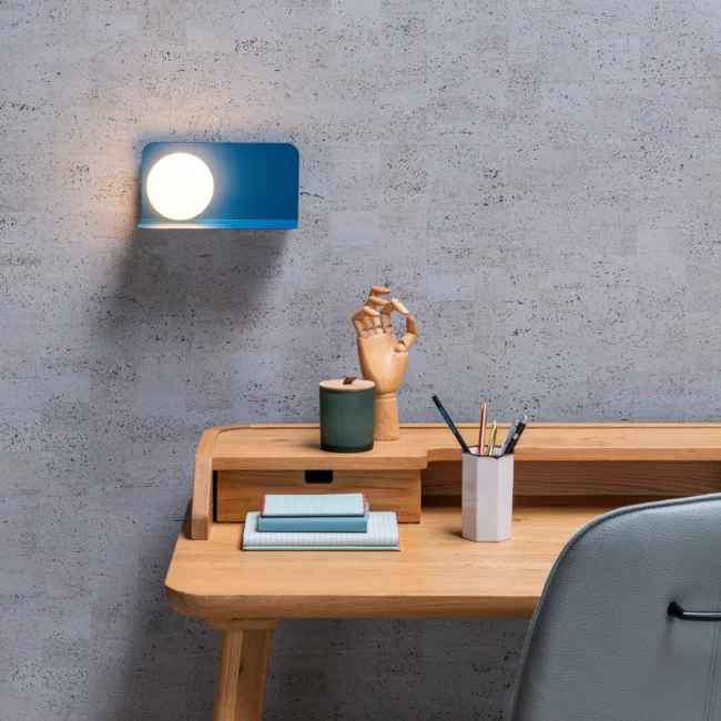 Un faisceau de lumière flottant semblant se diffuser au loin. Ou pas ? Voici Bonni, un luminaire s’adaptant à tous les environnements : une chambre, un salon, un couloir ou des toilettes. Bonni restera votre fidèle compagnon. Sa source lumineuse enveloppée d’une sphère blanche laiteuse s’accroche à une solide plaque d’acier. Semblable à un livre ouvert, Bonni mesure 24 centimètres de long, presque 13 centimètres de large et 12 centimètres de haut.