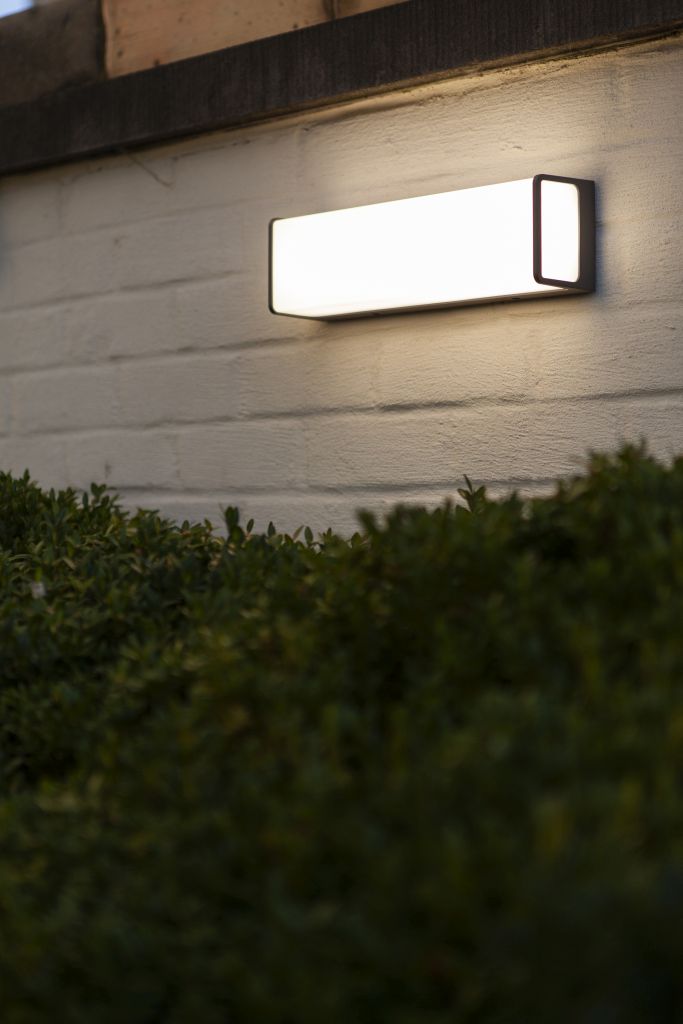 Cette applique murale LED gris anthracite se trouve dans un support rectangulaire en aluminium moulé sous pression durable. Le design élégant émet une puissante lumière blanche froide de 2 200 lumen