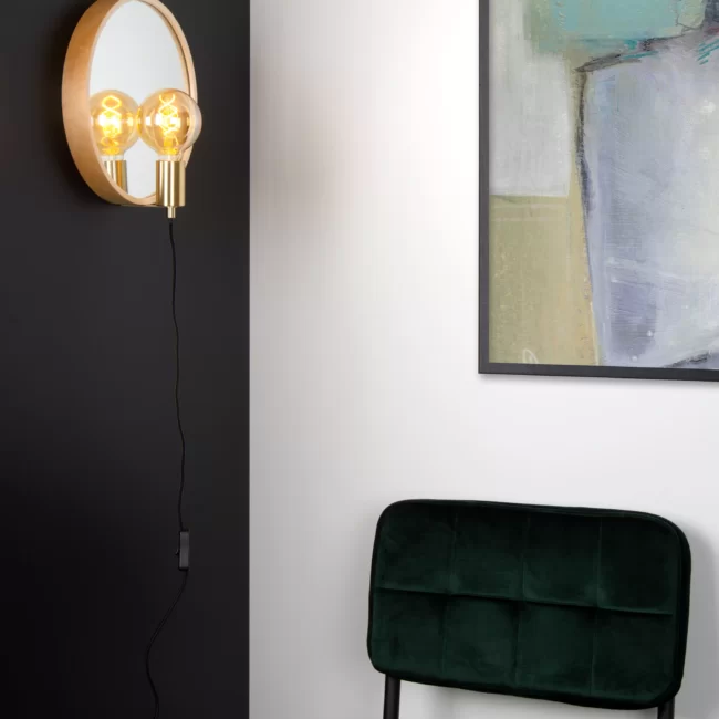 Reflex, le nom le dit. La source lumineuse et le socle peuvent facilement admirer leur propre reflet dans le miroir situé derrière. De cette façon, cette applique murale réfléchit également la lumière dans la pièce. Cette lampe miroir est un joli accroche-l ’œil en bois pour une touche très chaleureuse. Le miroir a un diamètre de 31 centimètres et le luminaire complet a une épaisseur de 21 centimètres. Un format compact, idéal pour les intérieurs scandinaves, modernes ou ruraux. Vous pouvez facilement allumer et éteindre la lampe avec son interrupteur.