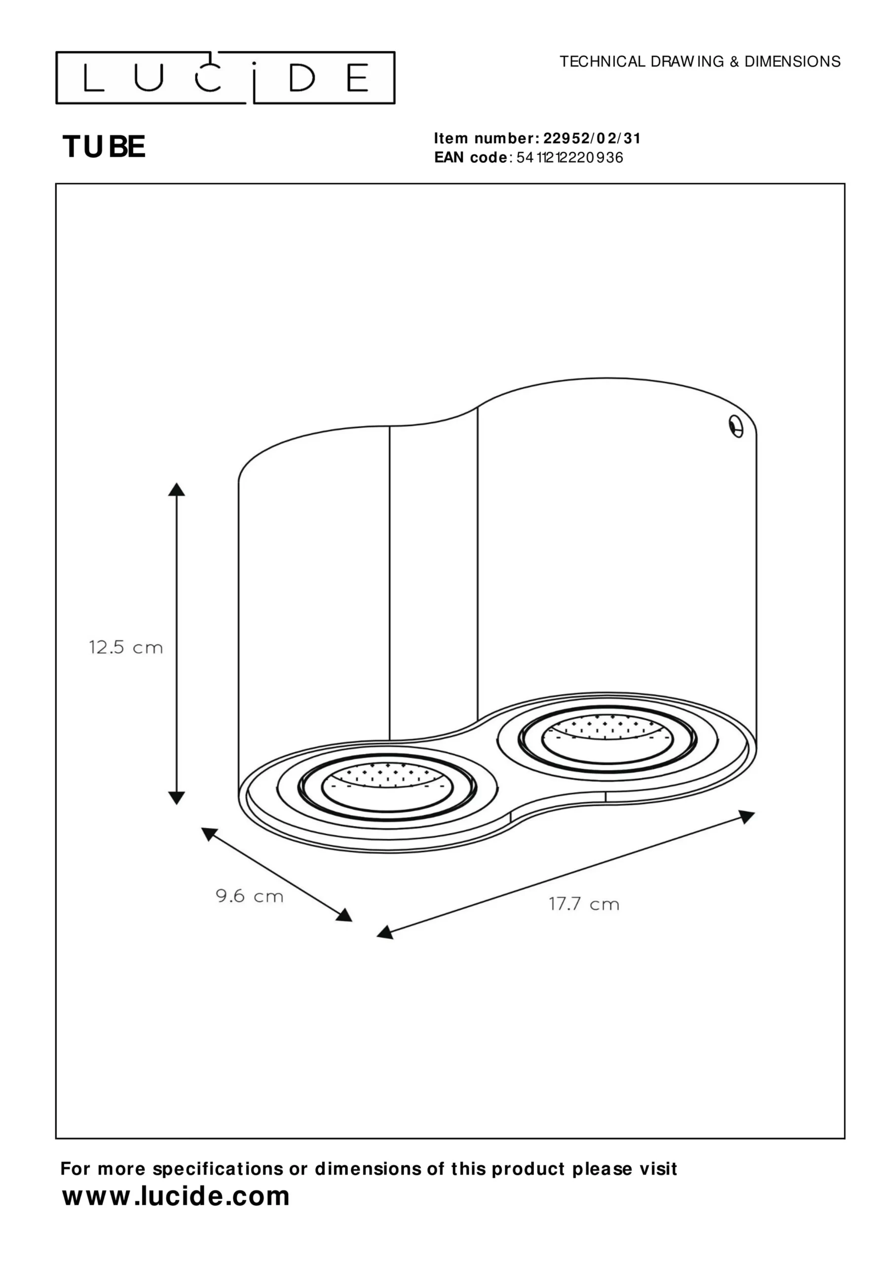 Le spot Tube 2 points lumineux rond de Lucide est un luminaire en aluminium haut de gamme, ce qui lui confère donc une apparence de très haute qualité. Avec des dimensions de 9,6cm x 17,5cm, il sera facile à installer sur une boite de dérivation. Ce produit est idéalement adapté pour éclairer vos toilettes ou votre hall. Utilisé en série, le spot Tube saura parfaitement trouver sa place au-dessus d’un bar ou d’un comptoir de cuisine. Grâce à sa tête pivotant à 360° et s’inclinant, vous pourrez orienter le spot Tube dans la direction de votre choix.